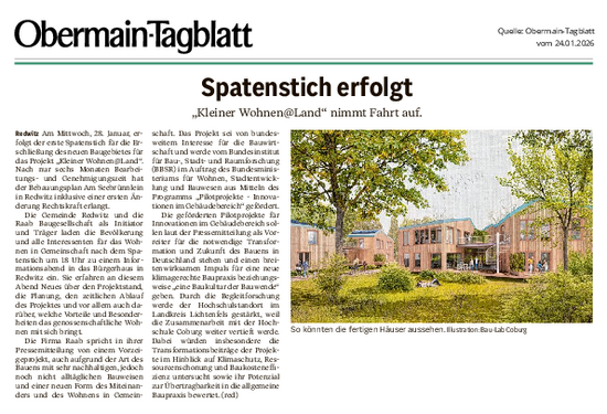 "Kleiner Wohnen Redwitz" – Ein Projekt der Gemeinde Redwitz und der RAAB Baugesellschaft, das durch ein Forschungsprojekt der Hochschule Coburg begleitet und unterstützt wird.