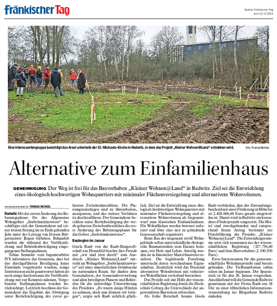 Startschuss für das ökologische Wohnprojekt „Kleiner Wohnen@Land“ mit Förderzusage und Baubeginn im Januar.