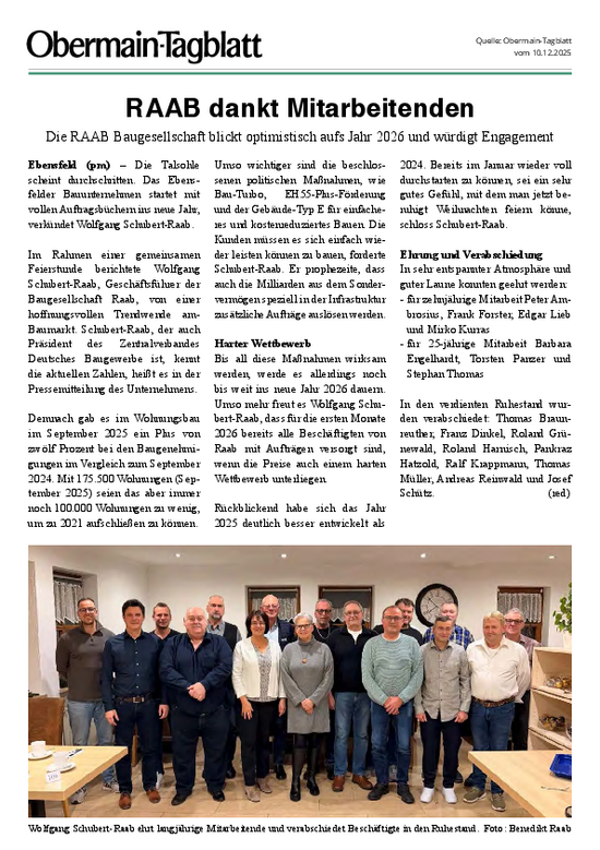 RAAB blickt optimistisch auf das Jahr 2026 und würdigt das Engagement der Mitarbeiter