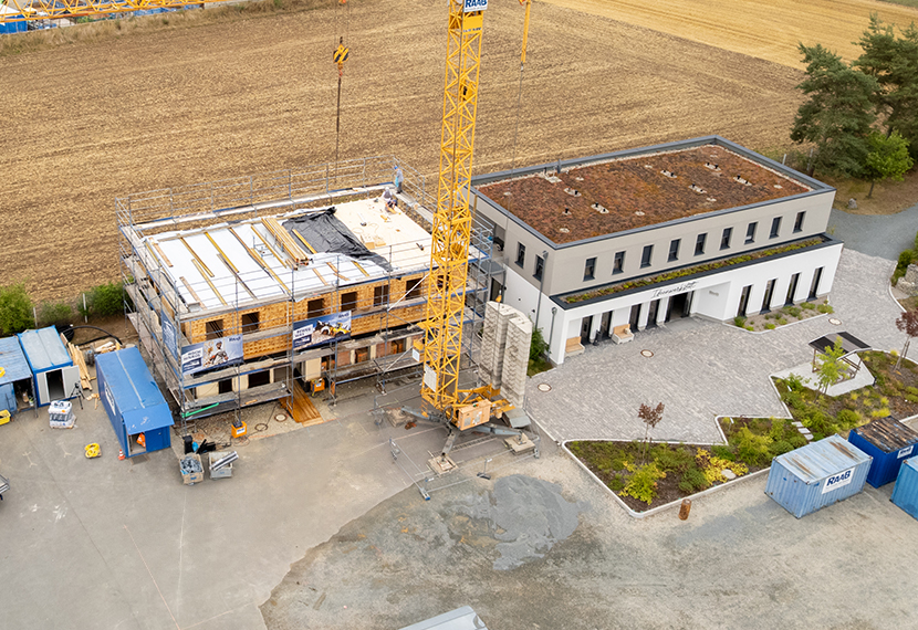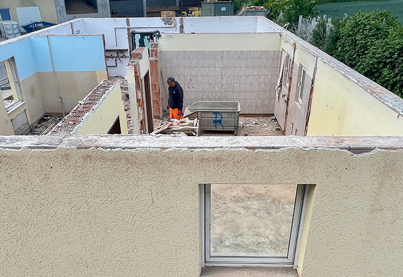Ein zentrales Ziel des Projekts ist die Anwendung und Test nachhaltiger Baustoffe, die bisher auf dem Markt noch wenig verwendet werden. Im Obergeschoss, welches neu aufgestockt wird, wird beispielsweise mit Käferholzsteinen (Triqbriqs) gearbeitet – einem innovativen Material, das in der Praxis getestet wird, um seine Eignung und Eigenschaften bei der Verarbeitung zu ermitteln. Dieses Projekt wird uns viele Erkenntnisse liefern, die wir für zukünftige Projekte nutzen können.