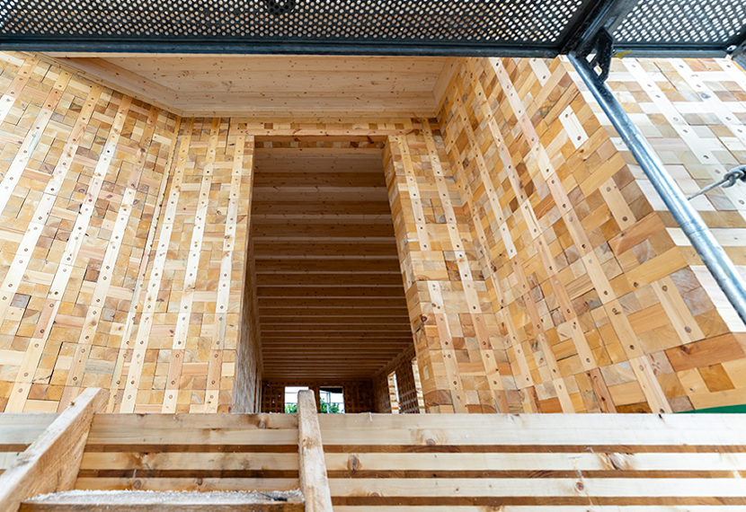 TRIQBRIQ ist ein innovatives Holzbausystem aus modularen Vollholzbausteinen – den sogenannten BRIQs. Sie werden mithilfe von Robotertechnik präzise gefertigt und auf der Baustelle ohne Leim oder Schrauben einfach zusammengesetzt und mit Holzdübeln fixiert.